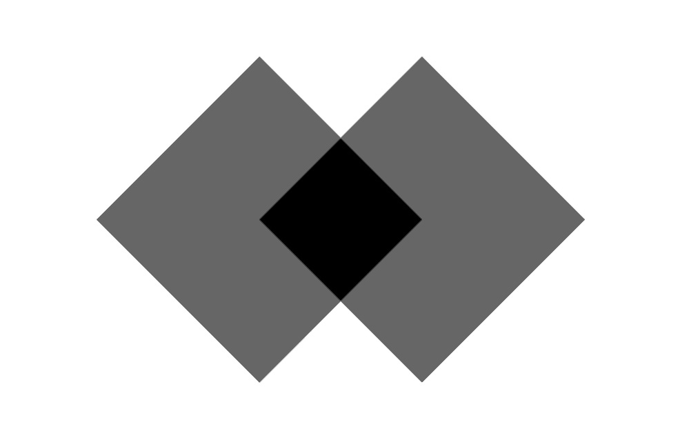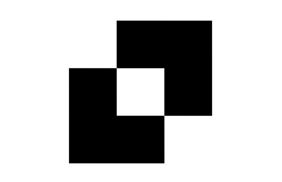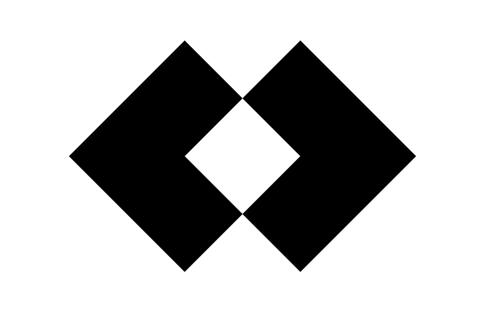 In the first version, I made two squares instead of the commonly used diamonds. This is because squares are less arbitrary than diamonds and thus better align with principle 2. By overlapping the squares, the logo became more compact and created the possibility to illustrate concepts such as ‘going back and forth’ and ‘focus’ (or flow) in the overlapping part:
