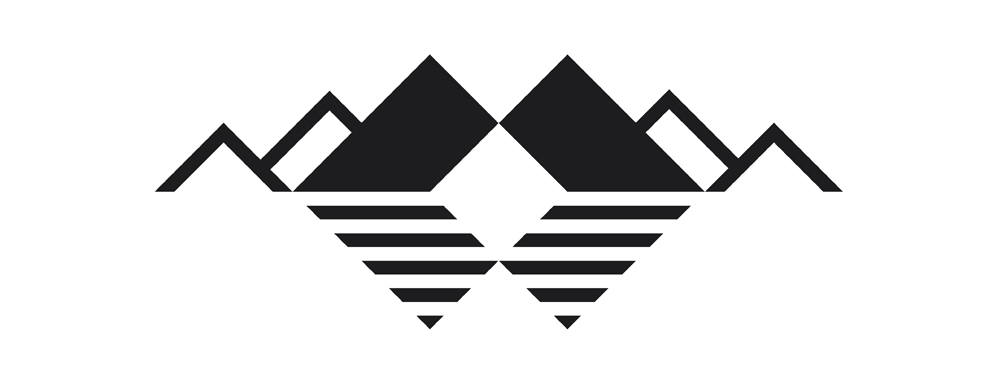 Inspired by an image of a mountain landscape reflected in a lake, I decided to add stripes to the lower half of the logo. By adding two right angles on the left and right sides, the illusion of a mountain landscape including a mountain lake was created: